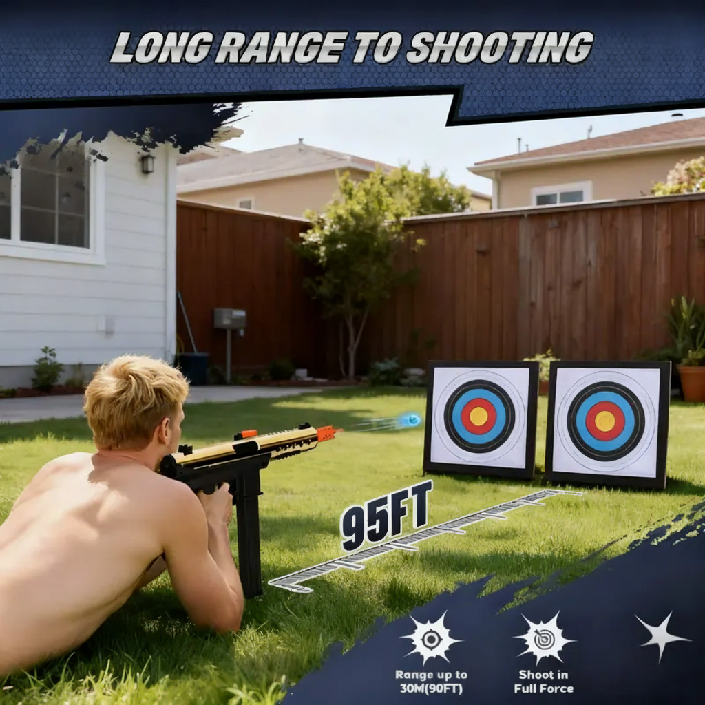 A fast-shooting gel blaster built for rapid fire with an electronic feeding magazine for jam-free performance.
